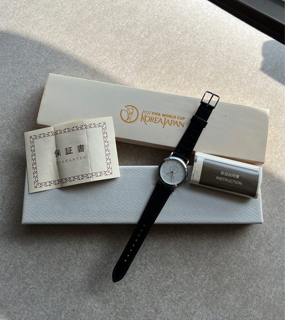 2. Seiko 石英2002年日韓合辦世界盃足球賽紀念錶,面盤直紋設計,中間以灰色調印有