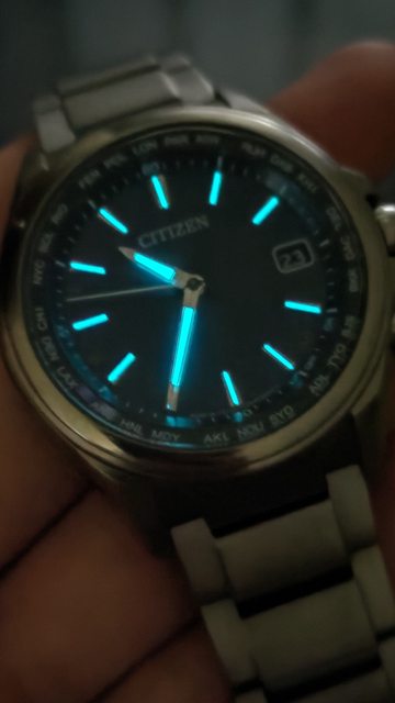 針判讀容易,時標跟指針晚上都有夜光,整體無傷,5局電波對時正常,萬年曆、防磁等