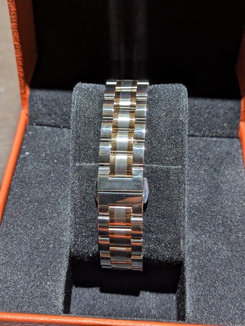 藍寶石水晶錶面,新換玫瑰金不鏽鋼蝴蝶扣錶帶