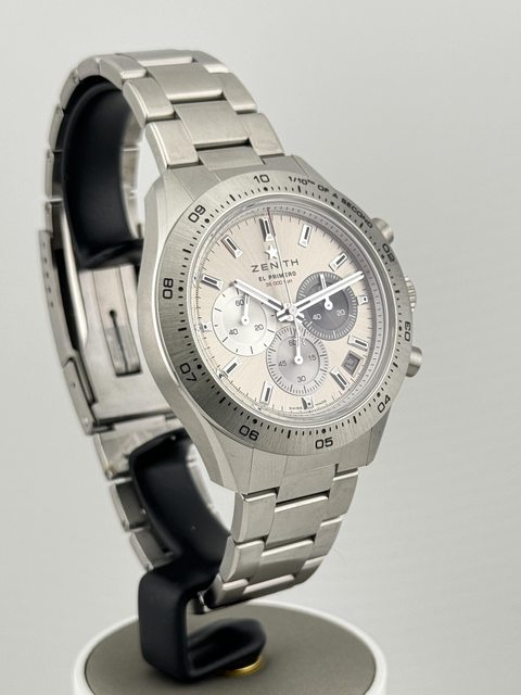 備註:採用41毫米鈦金屬錶殼及磨砂鈦金屬錶圈,配以鎳灰色太陽紋三色錶盤及鈦金屬錶鏈