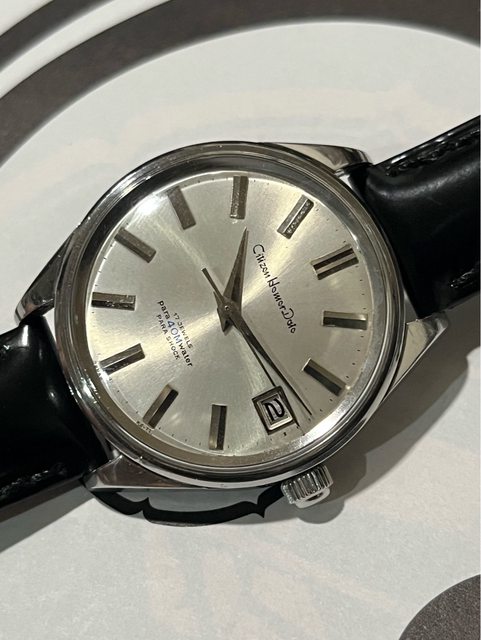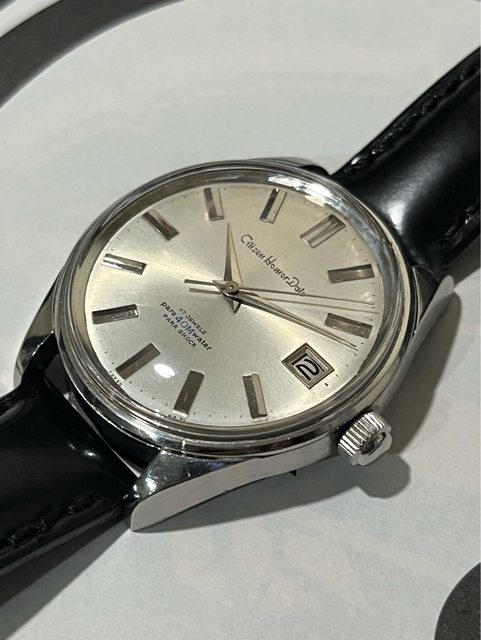 Citizen Homer date 昭和39 分鐵 no.17 來自1960 大分鐵道局 與一般鐵道錶不同的是,這支非數字而是金屬時標,並且有日期窗,無停秒功能 推測應為事務員用 且刻印方式與現行多數70年代看到的不同 應為早期的刻印方式 *錶殼五點鐘附近外圈有一較明顯之痕跡 不影響使用 售4300