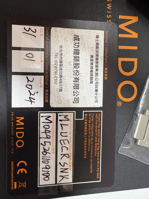 配件:MIDO原盒 公司貨保卡 剩餘錶節 提袋
