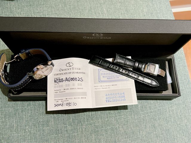 隨附物件: 新錶定價25200,盒單齊全,原廠錶帶未使用,另附贈一條手工訂製皮革錶帶