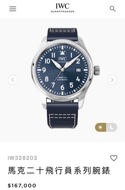 手錶型號:馬克20/IW328203