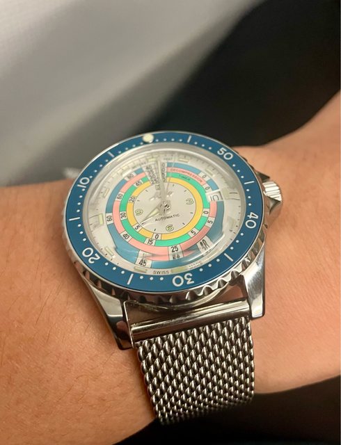 ,少見不撞錶,復刻以前的減壓彩虹圈,平時少戴,原廠有贈送兩條額外錶帶,有配戴過