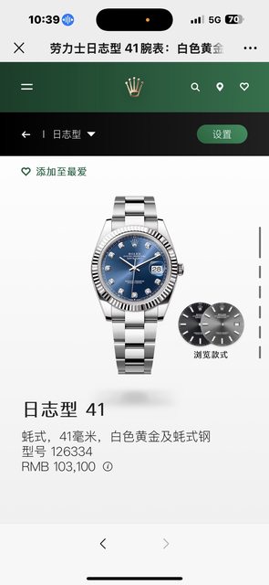 41mm日誌藍鑽(太陽圈、版帶):450000