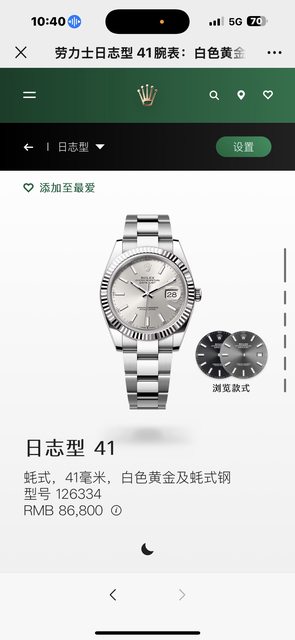 41mm日誌銀、日誌藍羅馬(太陽圈、版帶):380000