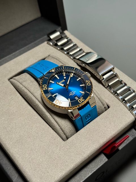 標題[賣錶] Oris Aquis 藍面半金 5日鍊