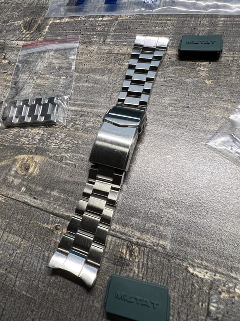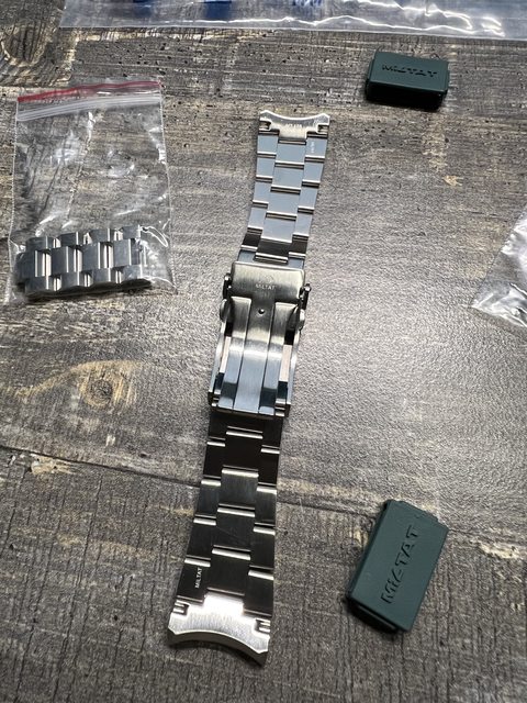 僅試戴過一次,但覺得風格和想搭的錶款不搭配,故售出。固定錶頭段的地方有一些摺痕
