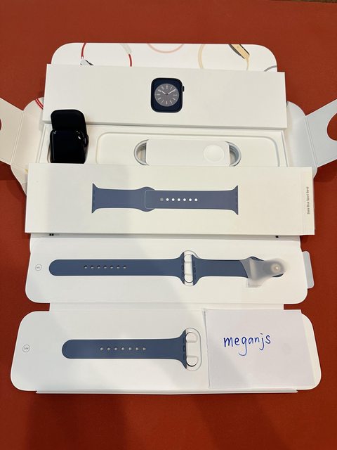 品牌:Apple Watch 型號 :S8 45mm GPS 鋁金屬 午夜色 購買年份:2022 購買地點:官網 金額:6000 交易地點:高雄、台南市區面交 附物件:有完整盒裝、全新充電線、原廠全新未使用過的錶帶 聯絡方式:站內信聯絡 電池健康度:84% 出售原因: 女用錶,因換了新手錶,故出售。 一開始拿到就馬上去貼膜及保護貼,並裝上保護殼,整體外觀上無刮傷保護得滿好,只有換置錶帶的地方有些許的痕跡。 附上照片: