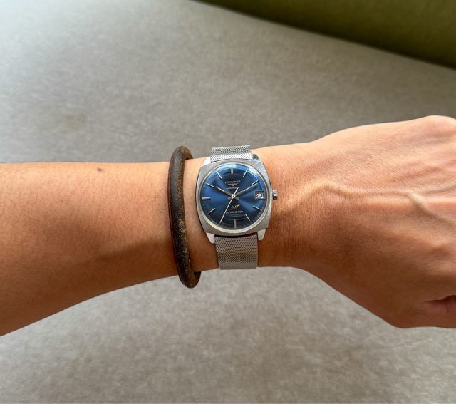 1. 售出一隻老浪琴Ultra Chron藍面原廠鏈帶手錶,1970左右生產,後期Ultra chron機