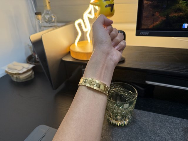 一開始在玫瑰金與黃金之間游移不定,後來剛好黃K有現貨可以看,