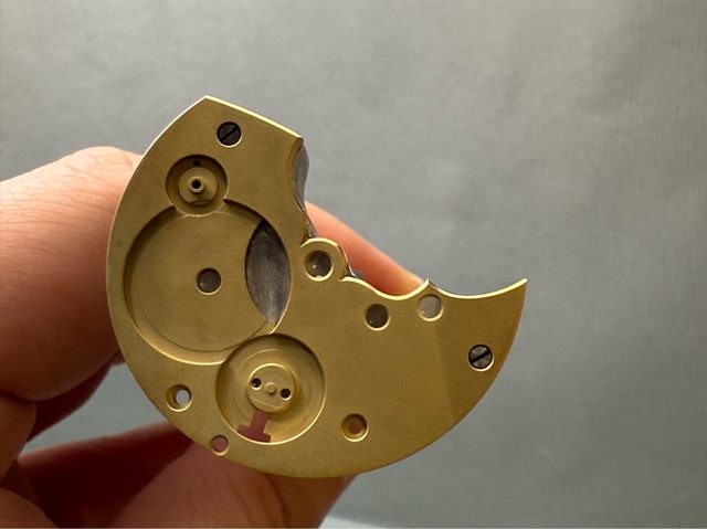 另外一個則是擺輪橋板,目前由於找不到可以直接購買的高品質游絲,因此我們暫時不會
