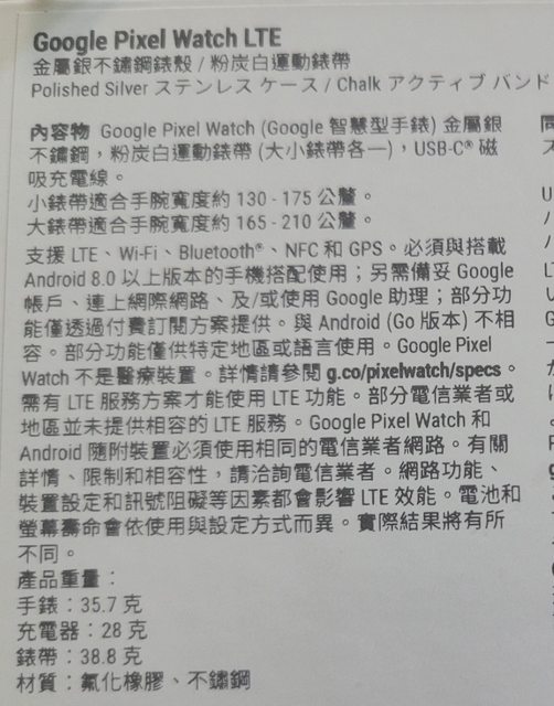 【手錶型號】Google Pixel Watch 1 LTE 版