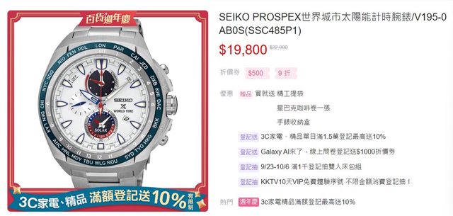 1.SEIKO -PROSPEX世界城市太陽能計時腕錶 45mm