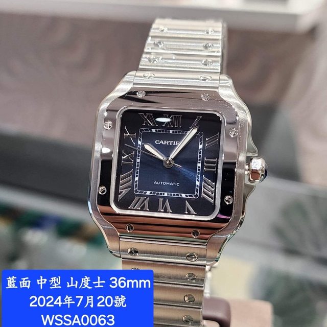 【售】:CARTIER 卡地亞 WSSA0063 中型 山度士系列 藍色面盤 羅馬數字時標 新式錶