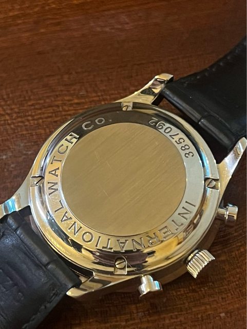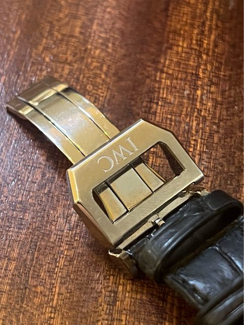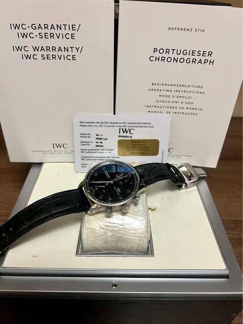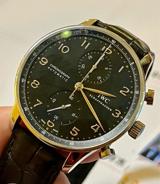 萬國一代經典大葡萄牙計時,帥氣黑面,斯文不失個性,原裝鱷魚皮錶帶、折疊扣,盒卡