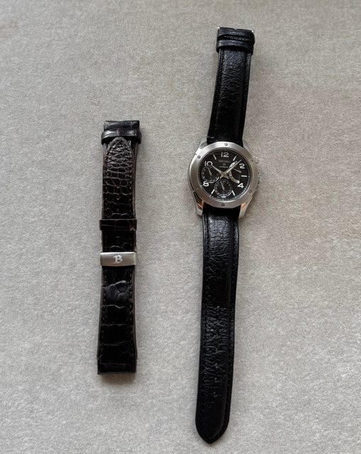,因原廠皮錶帶老化,再附上一條鴕鳥皮副廠錶帶,售15000含運~