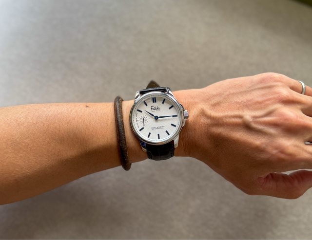 很美,背面也可以欣賞到機芯的作動,這隻當初售價大約10萬日幣,走時功能正常,售50