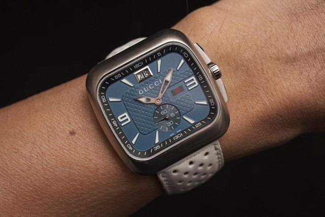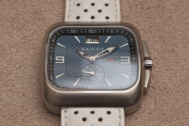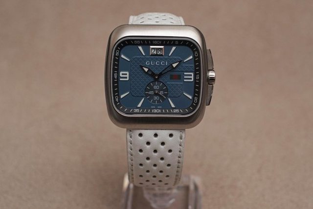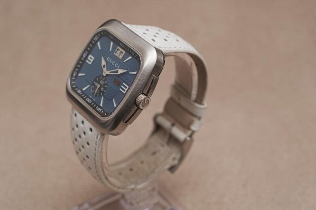 品牌名稱:Gucci Coupe 131.3 石英 男錶 欲售金額:7500 隨附物件:無 物件描述:走時正常,品相正常使用痕跡如圖,鏡面無傷,錶帶老舊有小破損,不影響使 用,錶徑40mm 照片: