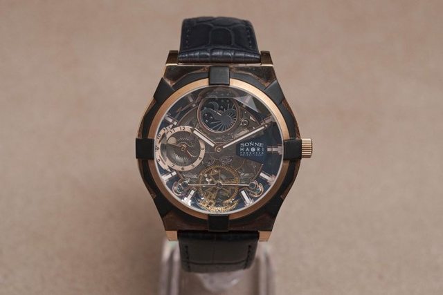 品牌名稱:Sonne HAORI H019 雙時區 日月相 鏤空 自動上鍊 男錶 (深藍色錶帶) 欲售金額:4500 隨附物件:盒、文件 物件描述:走時正常,品相正常使用痕跡如圖,內建雙時區與日月相功能,鏡面無傷,錶 徑45mm 照片: