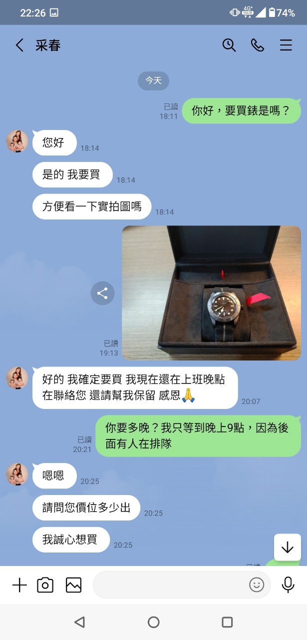 後來賣家說面交不太方便,請認識快遞司機代為面交,這邊我就開始覺得怪怪的,幾十萬的東西妳放心給其他人幫妳檢查錶況?